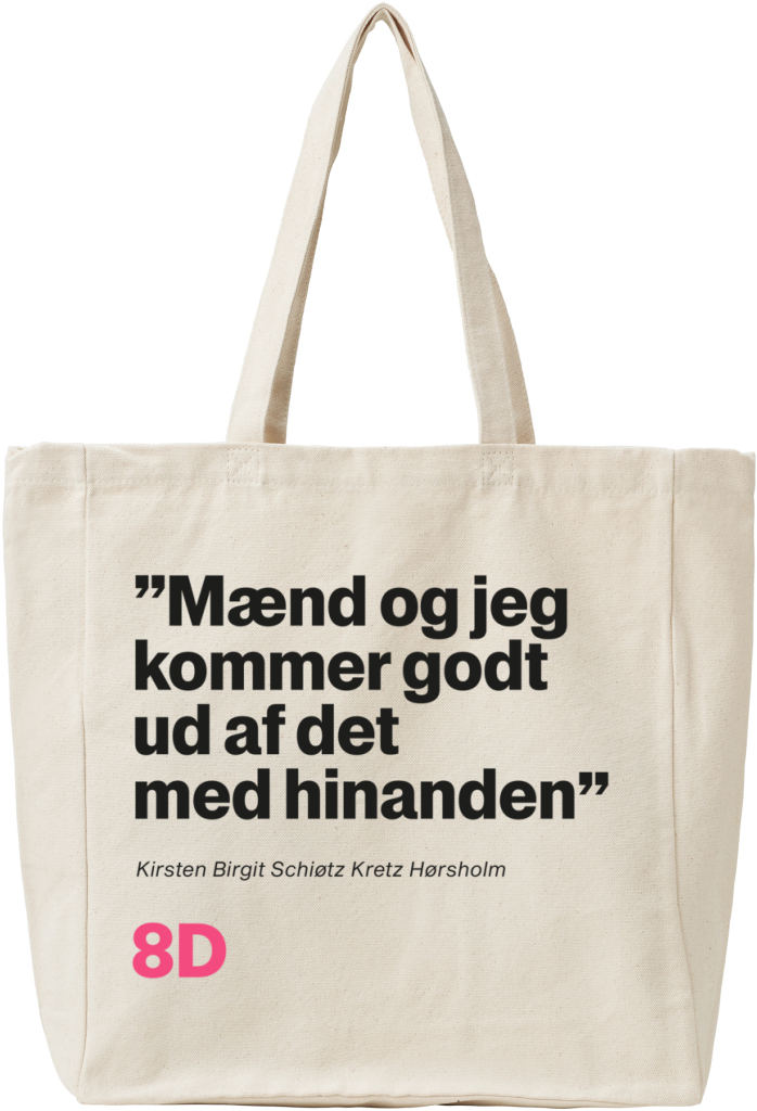 Mangler du en mulepose med en signalværdi, der ikke er til at tage fejl af? Så er r8Dios ‘Mænd og jeg kommer godt ud af det med hinanden’-mulepose med citat af Kirsten Birgit måske noget for dig. Hvem ved, måske du får en sild i nettet?
